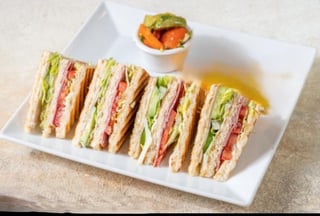 Sliced smoked turkey, pepperoni, cheddar, lettuce, bell peppers, onions and sweet corn topped with Auntie Loulou's homemade caesar dressing