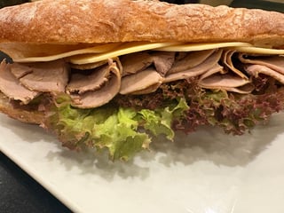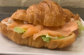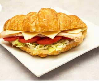 Croissant filled with slices of Feta cheese & tomato & lettuce