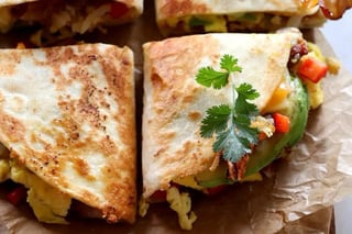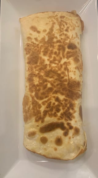 Melted Mozzarella cheese over omelet eggs wrapped in taco bread