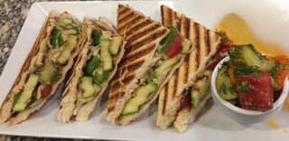 Cucumbers, carrots, lettuce, green bell peppers, tomatoes served with Auntie Loulou's homemade vinaigrette dressing