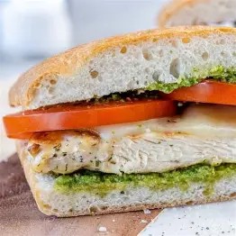 Iceberg lettuce topped with grilled chicken, shredded cheese, croutons served with Auntie Loulou's homemade caesar dressing