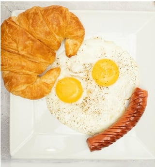 2 fried eggs + Sausages + Croissant + Mango or Strawberry or Lemon juice