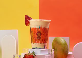 مزيج من المانجو مع آيس كريم فانيلا مع الفراولة