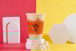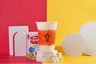مزيج من ايس كريم الفانيليا مع الحليب وصوص وشوكلاتة كيندر.