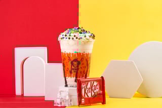 خليط من آيس كريم الفانيليا مع الحليب،وشوكلاتة كيت كات.