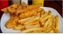 Two large golden fried fillets of southern farm raised catfish