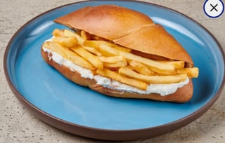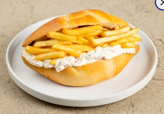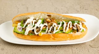 Με ψωμί XL - πιπεριά - μανιτάρι - πατάτες τηγανητές - καλαμπόκι - αβοκάντο - κρεμμύδι - μαγιονέζα vegan