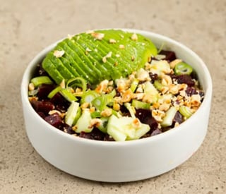 Salad with beetroot - cucumber - avocado - hazelnuts & spring onion
