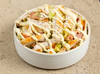 Salad with mixed green leaves - chicken fillet - bacon - parmesan - croutons - corn and mustard sauce