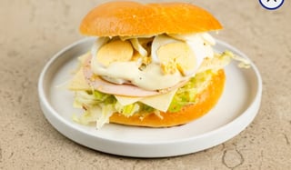 With boiled egg, turkey, cheese, iceberg and mayonnaise
