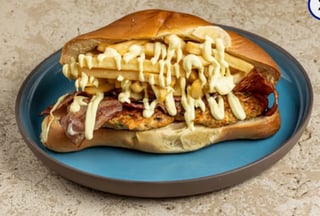 With XL bread, pepper, mushroom, fries, corn, avocado, onion & vegan mayonnaise