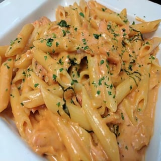 Smoked Salmon & Vodka cooked in a Creamy Marinara Sauce