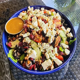 Smoked salmon, feta or cream cheese, olive oil, red onions, arugula