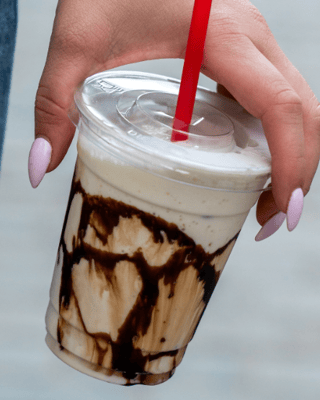 Mε Πραλίνα σοκολάτα, καραμέλα, μπισκότο & μπανάνα