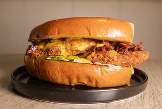 - Potato bun - iceberg lettuce - bacon jam - mosaiko sauce - cheddar sauce - breaded chicken