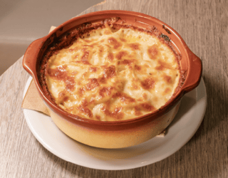 Mozzarella, κρέμα παρμεζάνας, bacon
