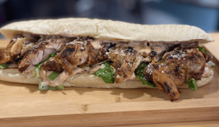 - Juicy chicken thigh fillet - coleslaw - lettuce - pickled cabbage - ranch sauce - parmesan