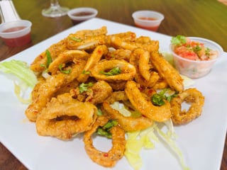 Battered yuca fries Garnished with pico de gallo, ranch dressing, and spicy mango sauce.