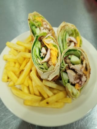 Delight in the simplicity of our Gluten-Free Chicken Wrap, packed with the authentic flavors of Jamaica – onions, tomato, lettuce – offering a taste of the Caribbean in every bite.