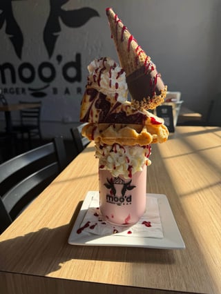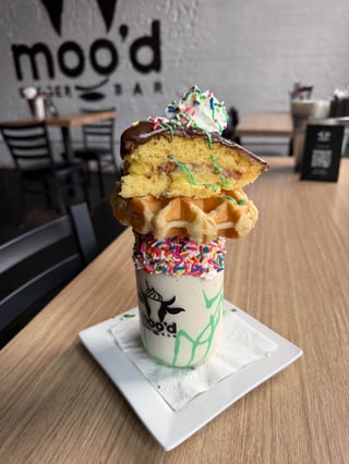 *Contains Alcohol* Vanilla Ice Cream + Guinness + Chocolate Rum Cream + Belgian Waffle + Boston Cream Pie + Whipped Cream + Rainbow Sprinkles