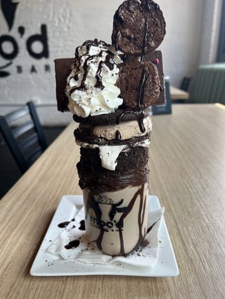 Brownie Batter Ice Cream + Brownie Ice Cream Cookie Sandwich + Whipped Cream + Brownie + Cosmic Brownie + Chocolate Frosting & Oreo Rim