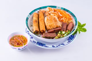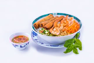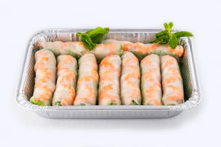 Shrimp, pork, vermicelli noodles, mint & lettuce leaves rolled in a