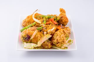 Chicken wings, garlic, brown onion, red & green bell pepper | Cánh Gà Chiên Ngũ Vị