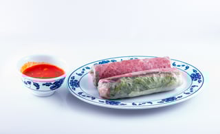 Grilled pork sausage wrapped rice paper wilh lettuce, cucumber, carrots, cilantra & mint served with in-house special sauce | Gỏi Cuốn Nem Nướng