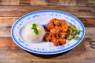 Chicken, mushroom, green onions & water chestnut served over crispy