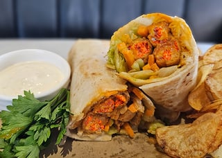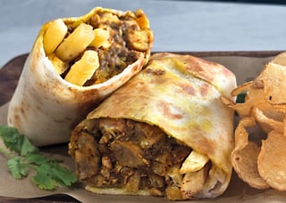 Chicken and french fries wrapped together and served Mitraillete style, lathered in curry for a spicy kick (please indicate spiciness level)
