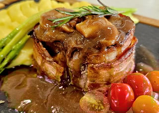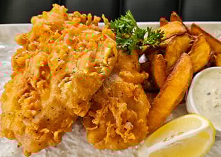 Our classic Fish & Chips features two crispy beer-battered filets of Atlantic Cod and home-made chips (wedge fries).