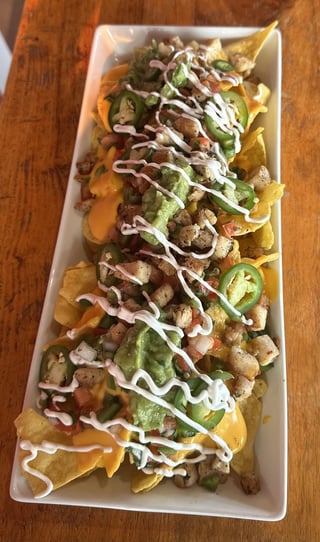 Tortilla chips, Nacho cheese, guacamole, sour cream, Pico de Gallo and fresh Jalapenos. With choice of protein ( Chicken, Ground Beef) $25