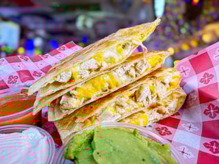 12" Flour Tortilla Grilled with Melty Cheddar Jack Cheese. Served with Red Salsa, Sour Cream, and Guacamole.