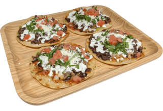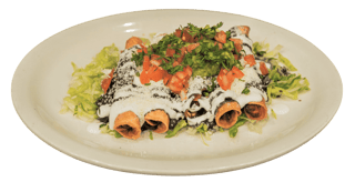 Servido con Queso mixto, Lechuga, Jitomate, Crema agria, Queso cotija y Guacamole. / Served with Mixed cheese, Lettuce, Tomatoes, Sour cream, Cotija cheese & Guacamole.