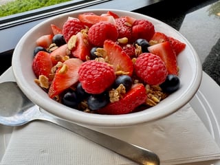 Housemade Greek vanilla yogurt topped with almond and walnut granola and an assortment of seasonal fresh berries, drizzled with lemon infused, locally sourced honey.